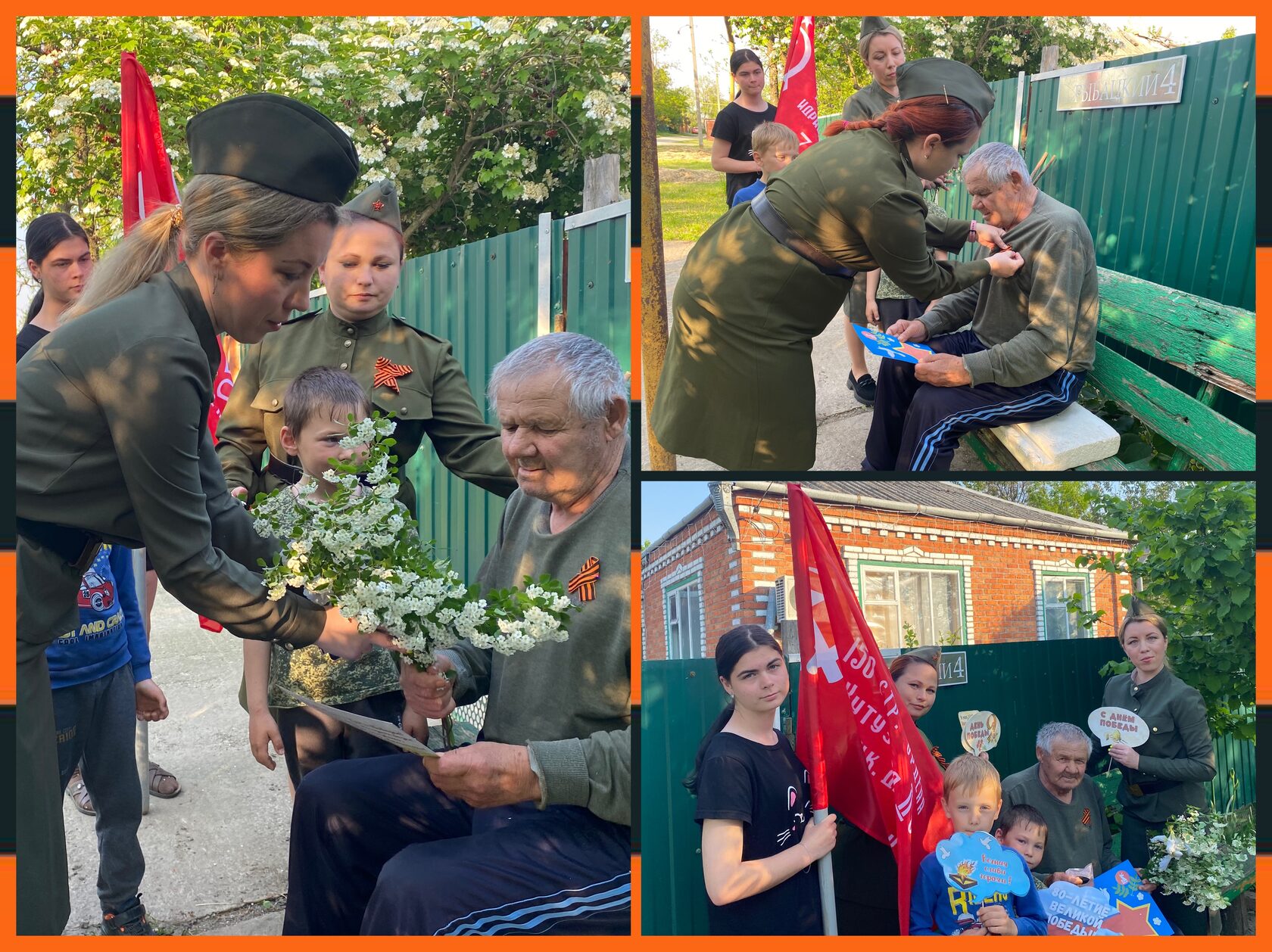 Организаторы и участники акции поздравили с наступающим праздником детей войны и старшее поколение хутора, выразили им слова благодарности за труд и стойкость, за мужество, за мир. Не оставили без внимания мать и бабушку погибших Героев СВО Гордееву Надежду Ивановну. Школьники прочли стихи и пожелали старшему поколению здоровья, долголетия, как можно больше солнечных и радостных дней, а также вручили открытки, приготовленные своими руками, цветы и георгиевские ленточки.