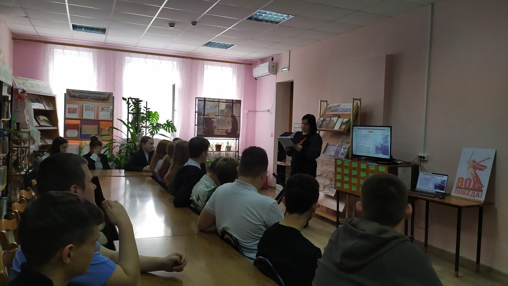 С помощью слайд – презентации «Сталинградская битва – великий подвиг народа» библиотекарь познакомила ребят с хронологией событий самой масштабной битвы Великой Отечественной войны, которая и определила её исход. Юные читатели узнали, почему так важно было немецкому командованию захватить этот город, сколько людей и военной техники было брошено для достижения этой цели и почему так важно было бойцам Красной Армии не отдать Сталинград врагу. Вспомнили героев, отдавших жизнь за победу, их подвиги, вспомнили неизвестных, ушедших в вечность, но подаривших нам мир. В завершение мероприятия, отдавая дань погибшим и преклоняясь перед мужеством солдат в Сталинградской битве, ребята почтили их память минутой молчания.