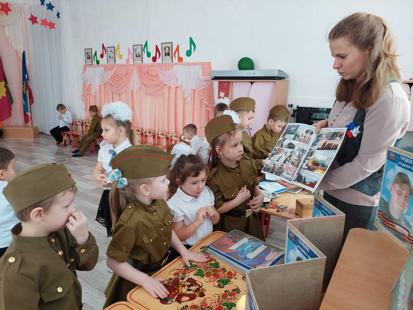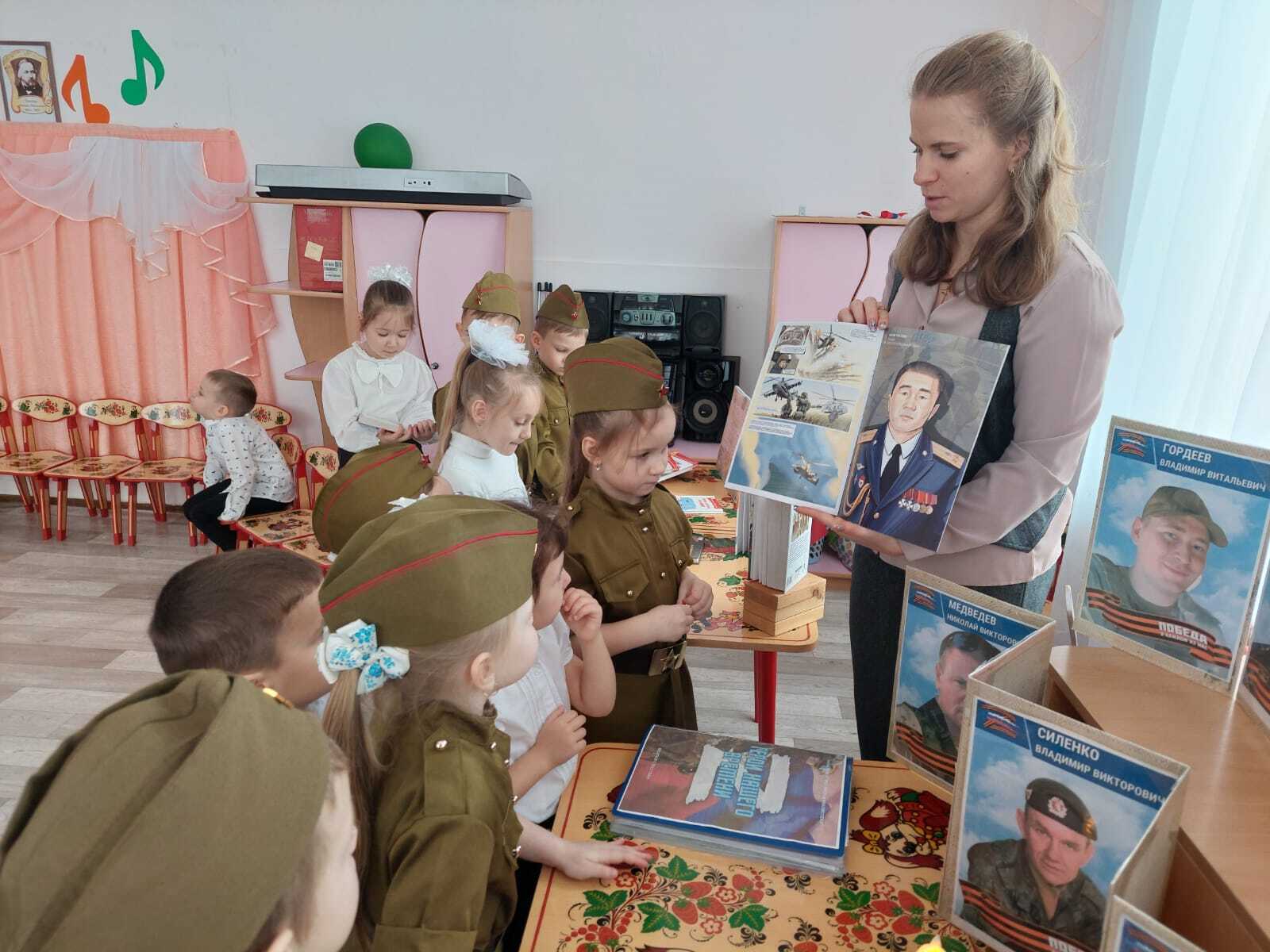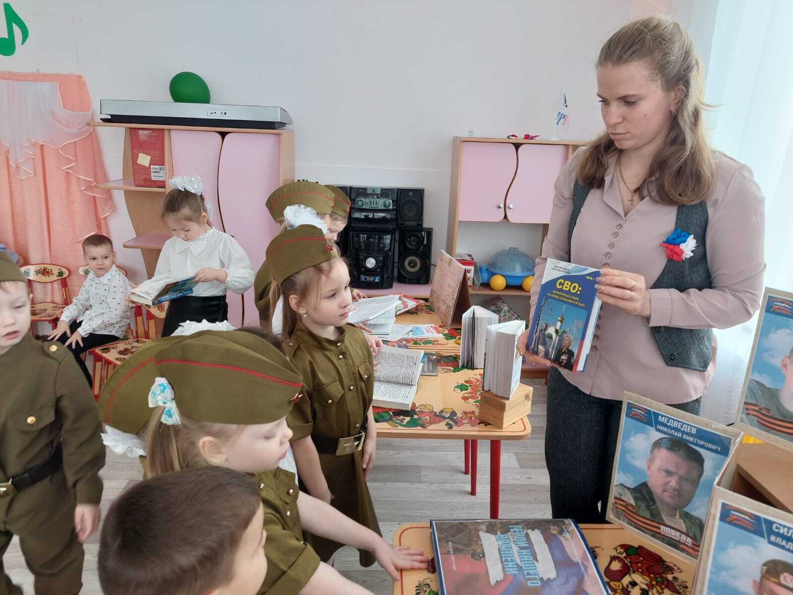Дошкольникам рассказали о подвиге российских солдат, выполняющих боевые задания в ходе специальной военной операции, об их отваге, мужестве и стойкости. Почетным гостем вечера стал участник СВО с позывным «Гоша», который поделился историей своих непростых будней. Воспитанники детского сада исполнили стихи и песни, а также нарисовали рисунки, которые будут отправлены в зону СВО в качестве поддержки. Не осталась без внимания книжно-иллюстративная выставка «Новое время – новые герои». Завершилось мероприятие минутой молчания.