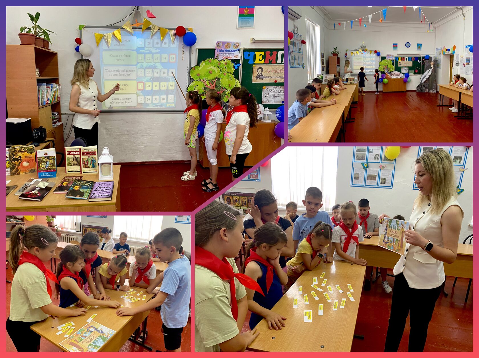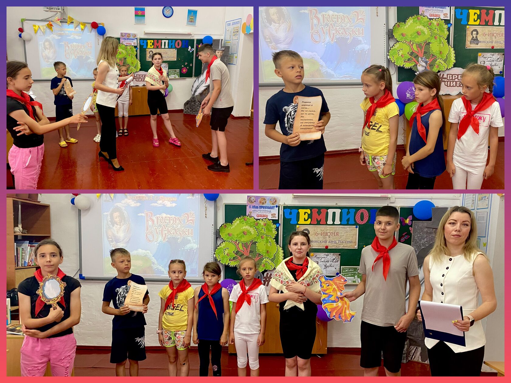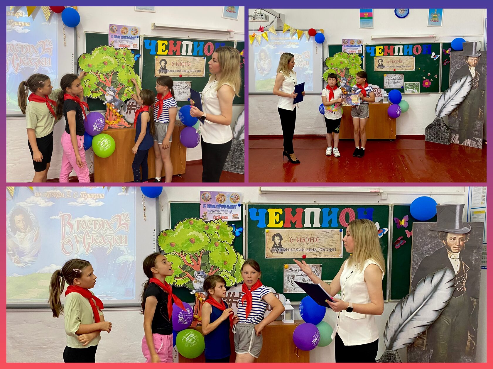 Ребята узнали о сказочной стране «Лукоморье», придуманной Александром Сергеевичем Пушкиным, о его детстве и творчестве, а затем отправились в необычное путешествие по сказкам поэта. Дружно и весело дети вспоминали известные произведения великого писателя, участвовали в различных играх и театрализованных конкурсах, блицтурнире «Вопросы Кота ученого» и интерактиве «В гостях у сказки». Ярким дополнением стала книжно-иллюстративная выставка «Великая гордость России» и тематическая зона «Живое пушкинское слово». Завершила мероприятие литературная акция «Читаем Пушкина вместе».