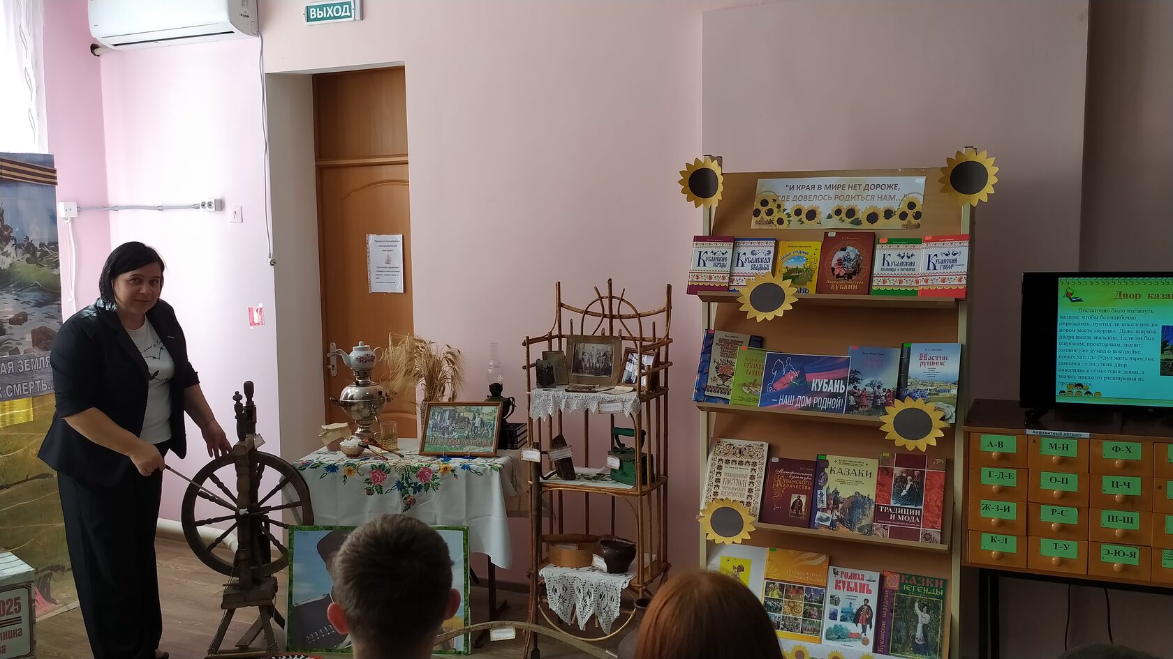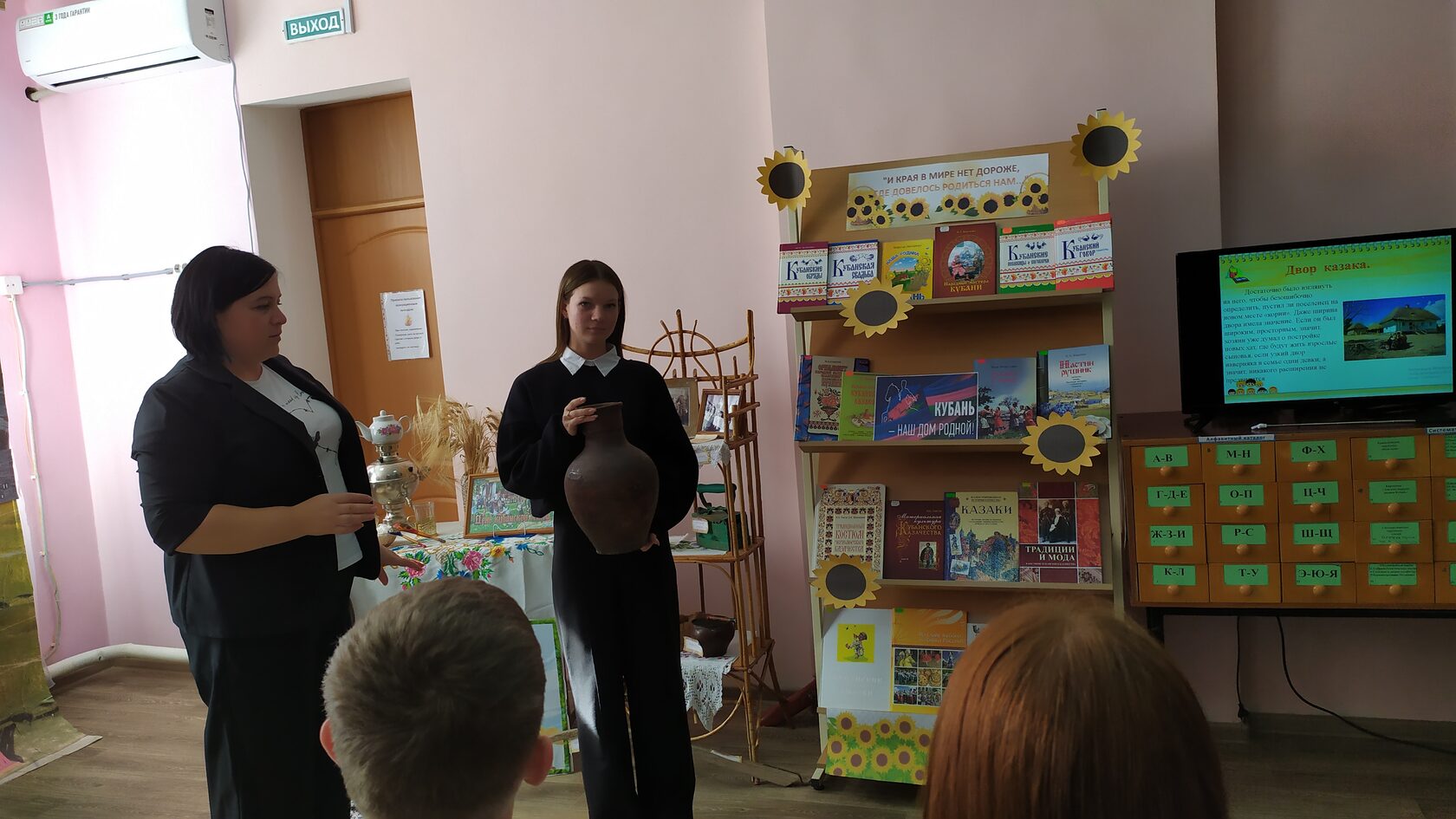 В ходе беседы библиотекарь рассказала ребятам об истории возникновения праздника. Провела обзор выставки, на которой были представлены книги кубанских писателей Вараввы И.Ф., Бакалдина В.Б. и Нестеренко В.Д., в творчестве которых тема семьи звучит искренне, тонко и душевно. Дополнила рассказ библиотекаря электронная презентация «Кубанская семья — традицией сильна», с помощью которой гости побывали в старинной кубанской хате, увидели элементы быта казака и казачки, познакомились с укладом жизни на Кубани. Особый интерес вызвали у ребят экспонаты домашнего обихода кубанской семьи, представленные на выставке в читальном зале. В завершение мероприятия многие дети поделились своими семейными традициями и обычаями, которые у них передаются из поколения в поколение.