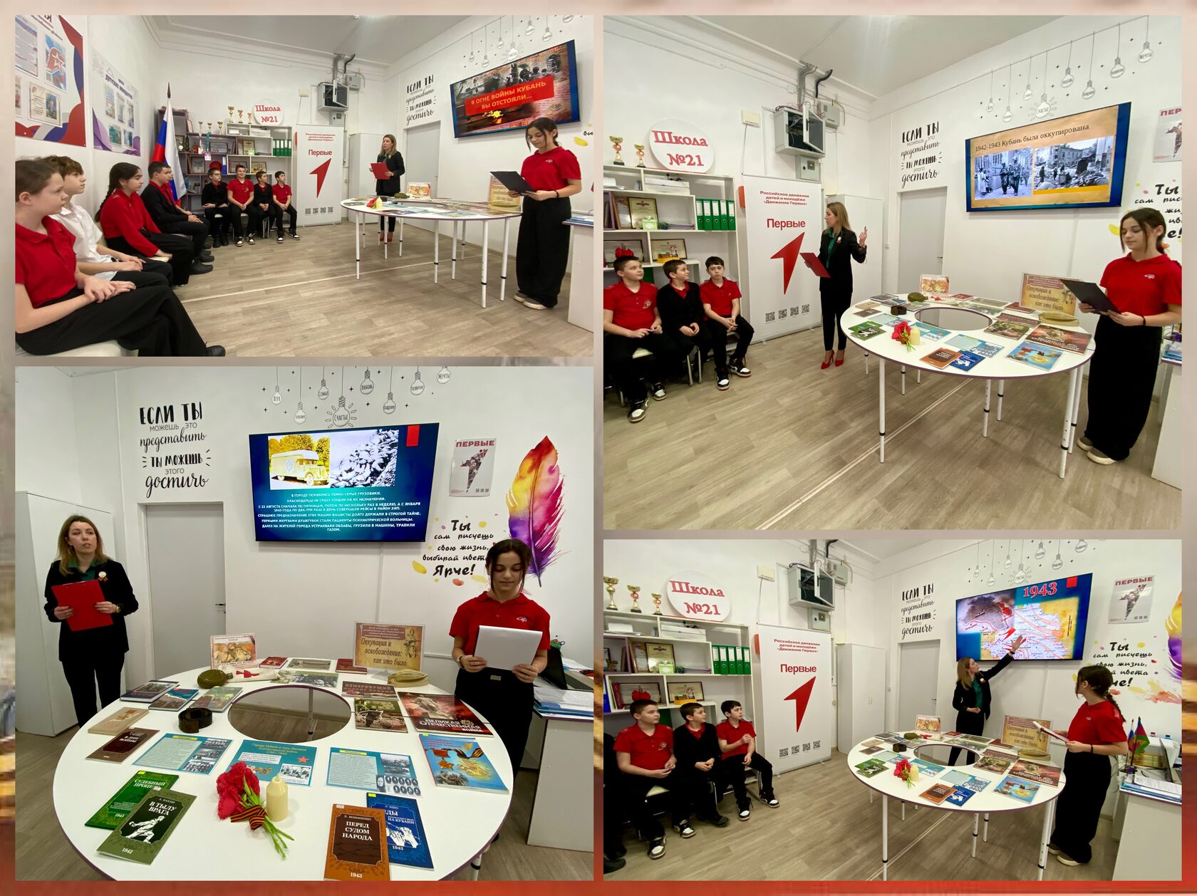 83-й годовщине освобождения станицы Роговской от немецко-фашистских захватчиков был посвящен час памяти «Кубань в огне войны», организованный 11 февраля 2026 года в канун памятной даты филиалом МБУК «Роговская библиотека» совместно с советником директора по воспитанию Глоба О.П. для учащихся 6-7 классов МБОУ ООШ №21.