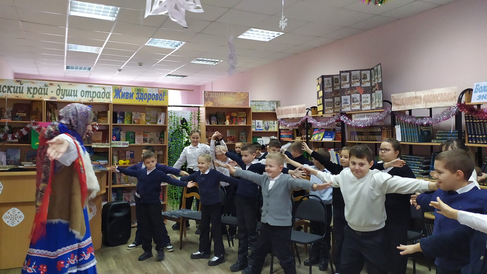 Вместе с персонажами русской народной сказки «Морозко» дети отправились в увлекательное путешествие по волшебному зимнему лесу, выполнили интересные задания Настеньки и приняли участие в весёлых конкурсах. Ребята с энтузиазмом показали театральное представление для дедушки Морозко, с удовольствием танцевали с ним под задорную музыку. Конечно же, Настенька и Морозко приготовили подарки для детей, что стало для них приятным сюрпризом. В библиотеке царила атмосфера настоящего праздника, все присутствующие смогли окунуться в волшебный мир зимней сказки.