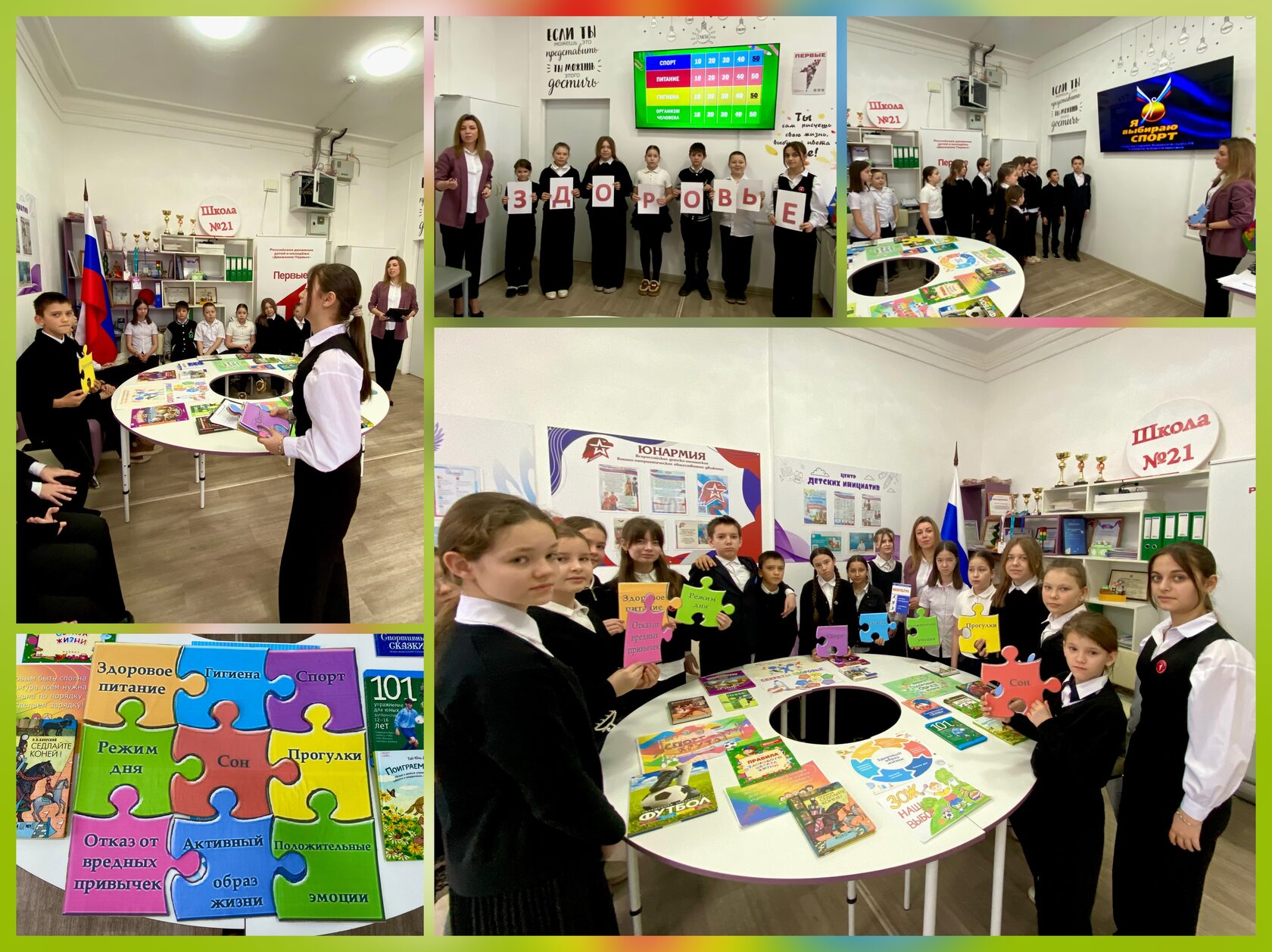 Школьники не только узнали массу полезной информации о необходимости соблюдения режима дня, важности сбалансированного питания, достаточной двигательной активности, отсутствия вредных привычек, но и поучаствовали в решении увлекательных тематических заданий и интерактиве «Будьте здоровы!». На каждом этапе игры ребята были активны, делились знаниями, размышляли над тем, правильно ли ведут свой образ жизни. Учащиеся проявили невероятный интерес и по окончании с легкостью собрали воедино пазлы с важными составляющими здоровья. Ярким информативным дополнением мероприятия стал слайд-журнал «Со здоровьем не шути, его с детства береги!», выставка-рекомендация «Секреты здоровья», ролики «О спорте», «Ремень», «Внимание на дорогу».
