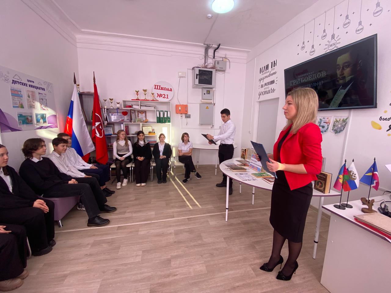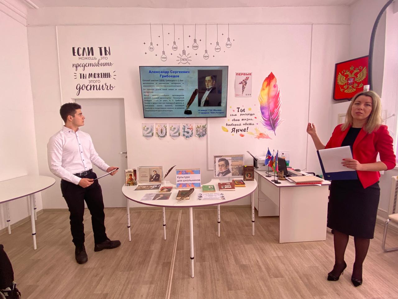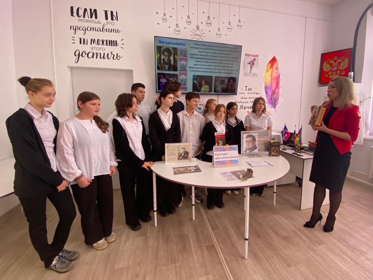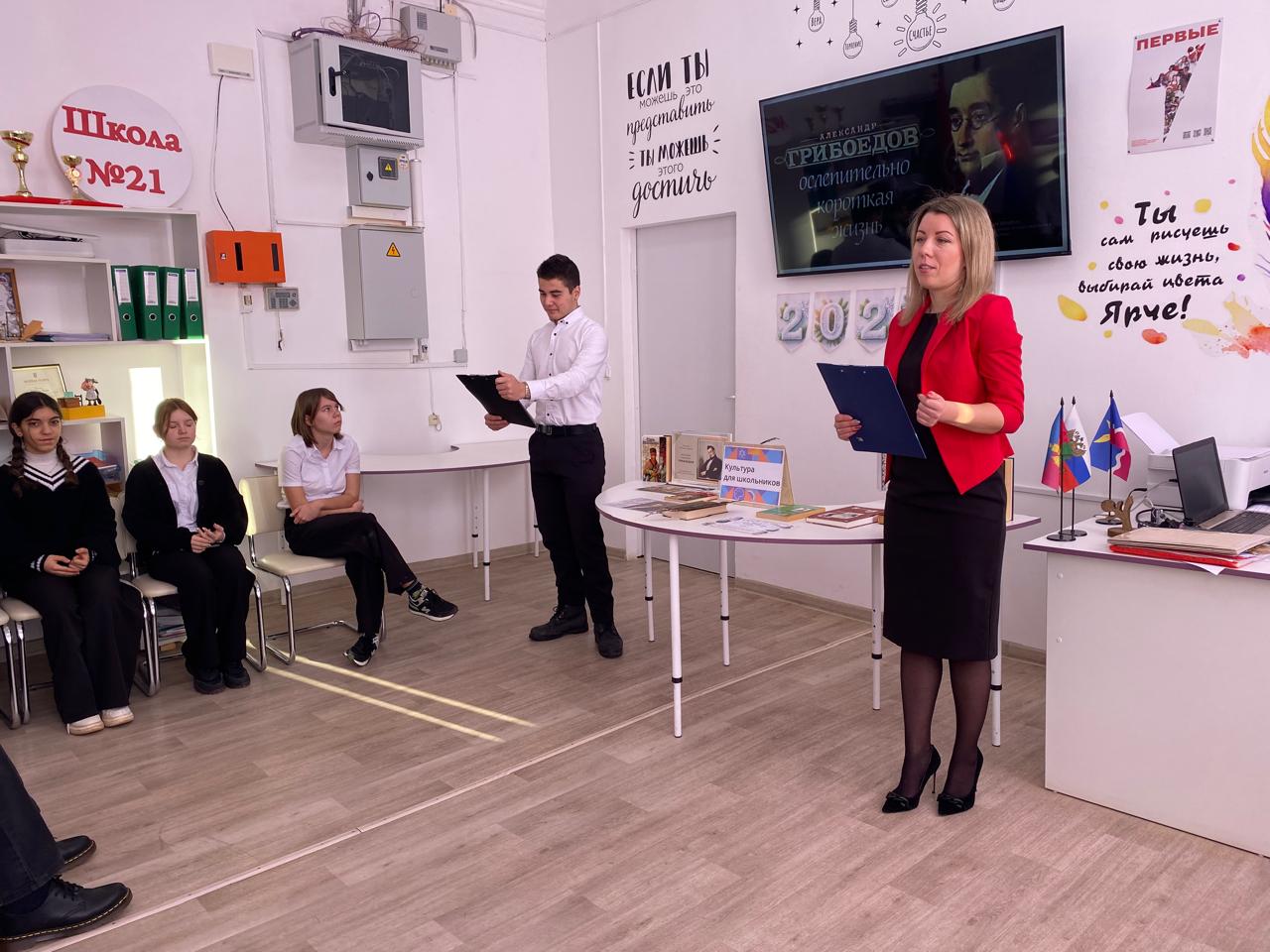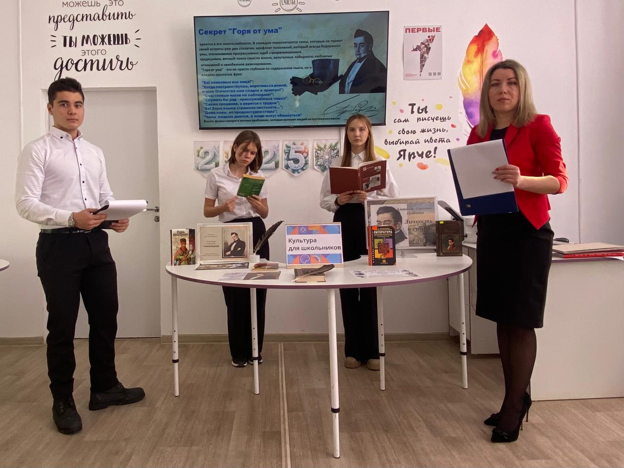 15 января 2025 года в честь 230-летия А.С. Грибоедова и в рамках проекта «Культура для школьников» филиал МБУК «Роговская библиотека» организовала для старшеклассников МБОУ ООШ №21 час литературных открытий «Тайны «Горя от ума»».