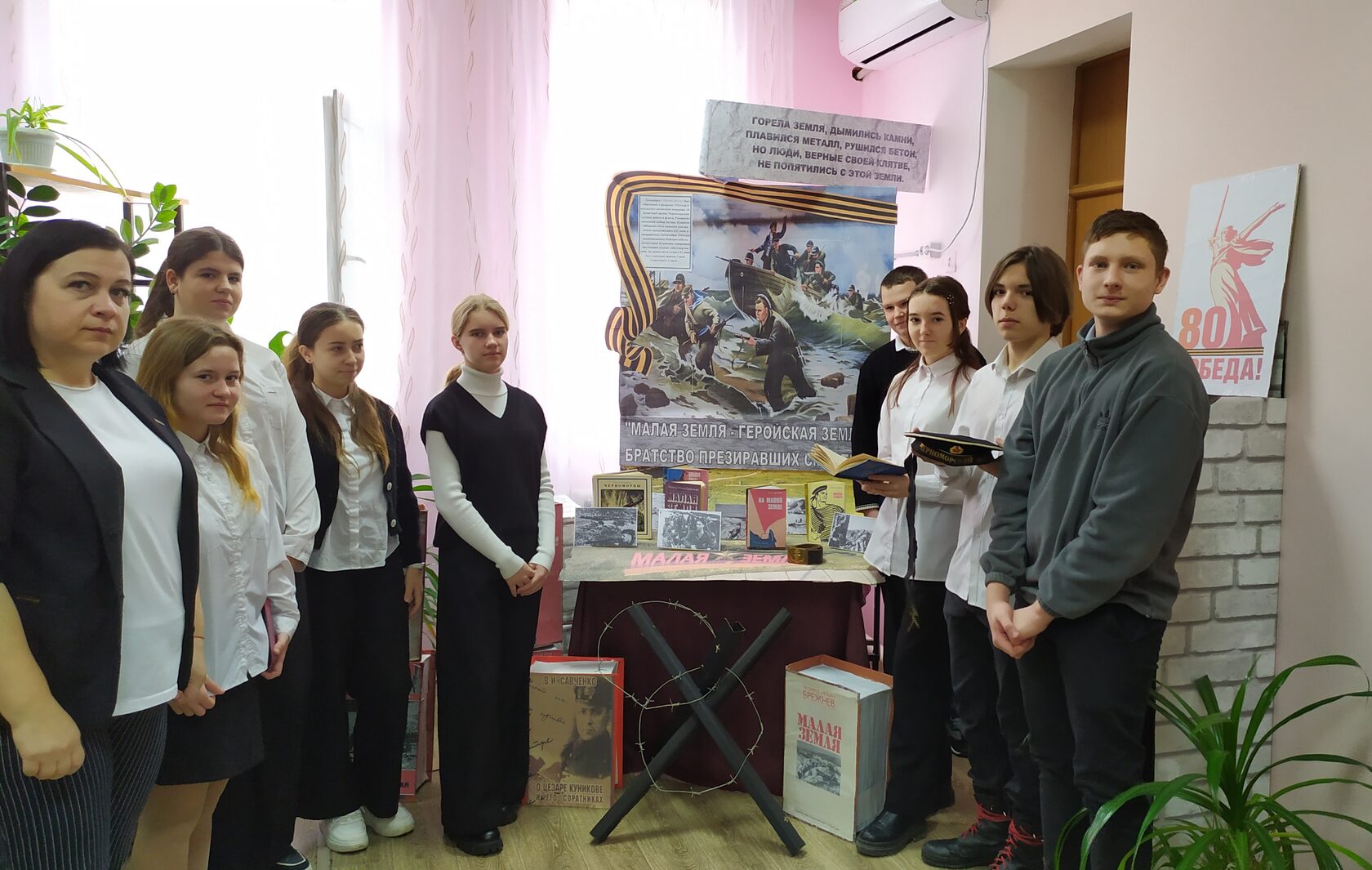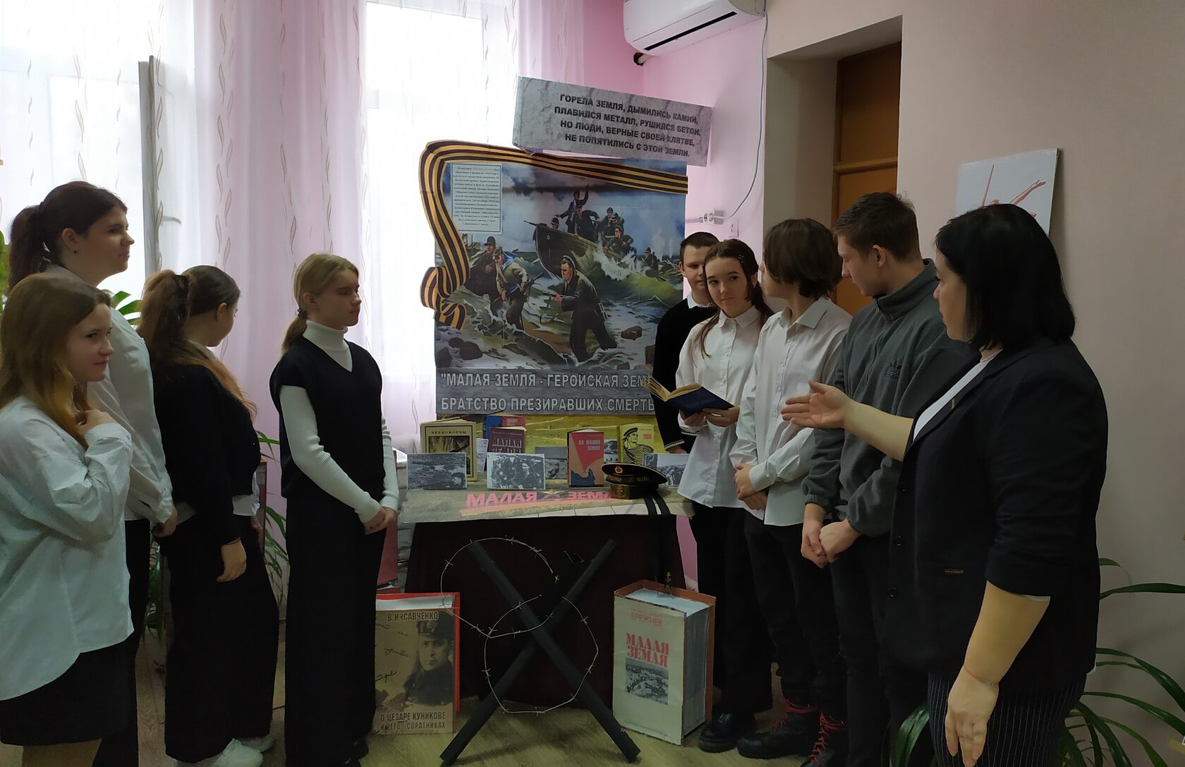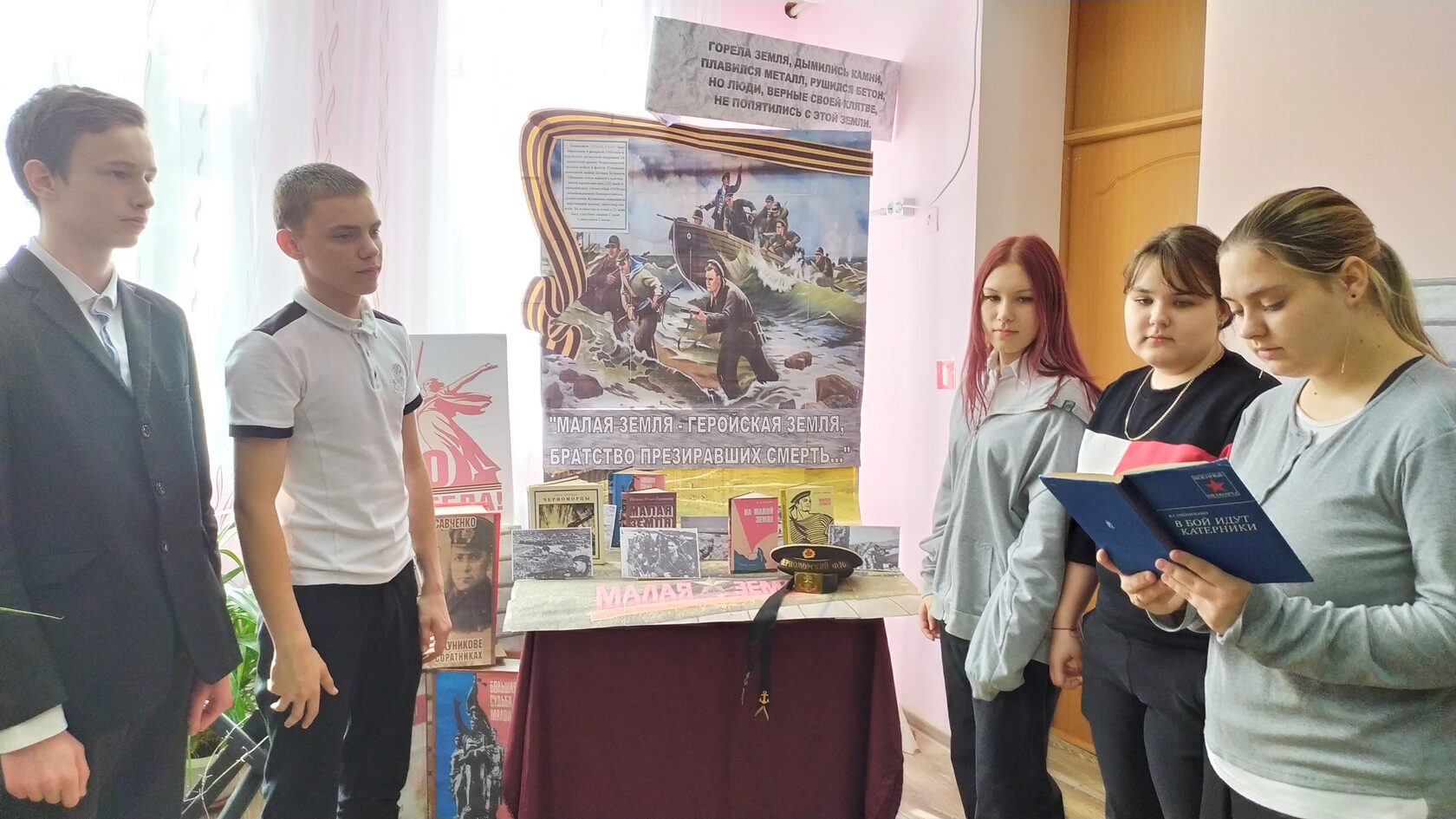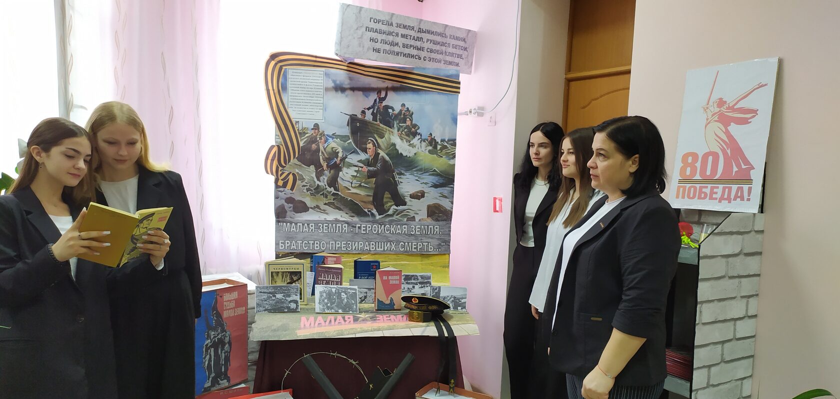 Перелистывая страницы книг, представленных на выставке – экспозиции «Малая земля – геройская земля, братство презиравших смерть…», читатели смогли погрузиться в события 1943 года и открыть для себя неизвестные страницы истории Великой отечественной войны. Учащимся рассказали о сражении, его значении, героях, благодаря которым был спасен город Новороссийск. В завершение мероприятия все присутствующие почтили память погибших в кровопролитных боях Великой Отечественной войны солдат минутой молчания.