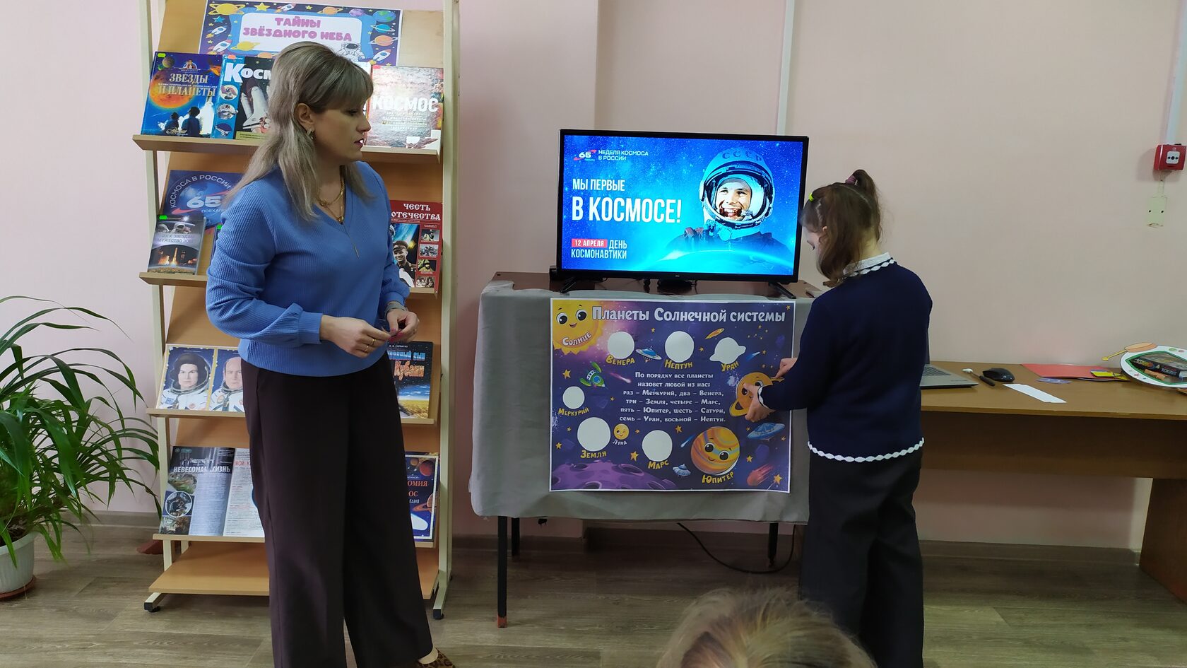 Зал библиотеки на время превратился в центр управления полётами. Разделившись на экипажи «Восток» и «Союз», ребята отправились в виртуальное путешествие по Солнечной системе. Игра состояла из нескольких «орбит» - раундов разной сложности. Выполняя интересные задания, школьники демонстрировали знания о планетах и созвездиях, вспомнили имена людей, которые внесли весомый вклад в изучение космоса и развитие отечественного ракетостроения. Дети учились работать с информацией из книг и отвечали на каверзные вопросы о быте на МКС.