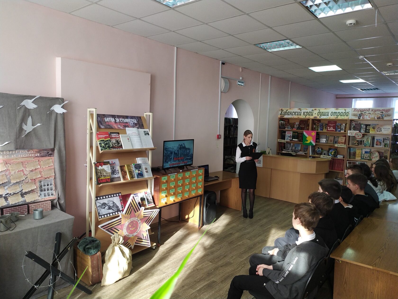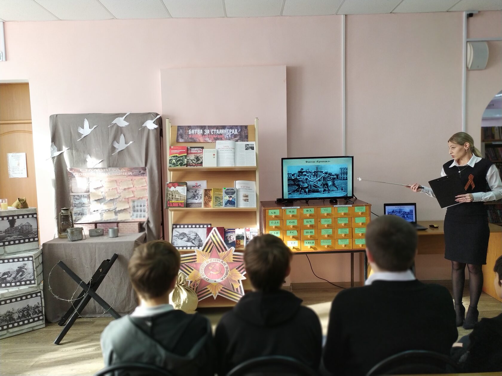 29 января в читальном зале МБУК «Роговская библиотека» в рамках военно-патриотического месячника состоялся час патриотизма «Город, что стал на века легендарным», посвящённый годовщине разгрома немецко-фашистских войск в Сталинградской битве. Сотрудники библиотеки пригласили учащихся старших классов СОШ №15, чтобы вместе вспомнить одно из самых судьбоносных сражений в истории человечества.