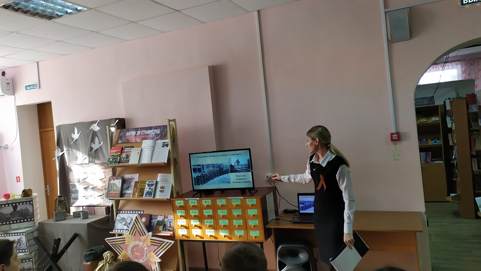 Мероприятие началось с краткого, но ёмкого экскурса в начало Великой Отечественной войны. Библиотекарь напомнила ребятам о трагическом дне 22 июня 1941 года и о том, как к лету 1942 года фронт подошел к берегам Волги. Это вступление задало важный контекст, позволив понять стратегическую значимость Сталинграда. Продолжил встречу рассказ о 200 днях ада, на протяжении которых шла битва. Подростки, затаив дыхание, слушали о легендарном Доме Павлова, который горстка бойцов удерживала 58 дней, о кровопролитных боях за Мамаев курган, о мужестве снайперов и медсестёр. Особое впечатление произвел рассказ об операции «Уран» — блестящем контрнаступлении советских войск.
