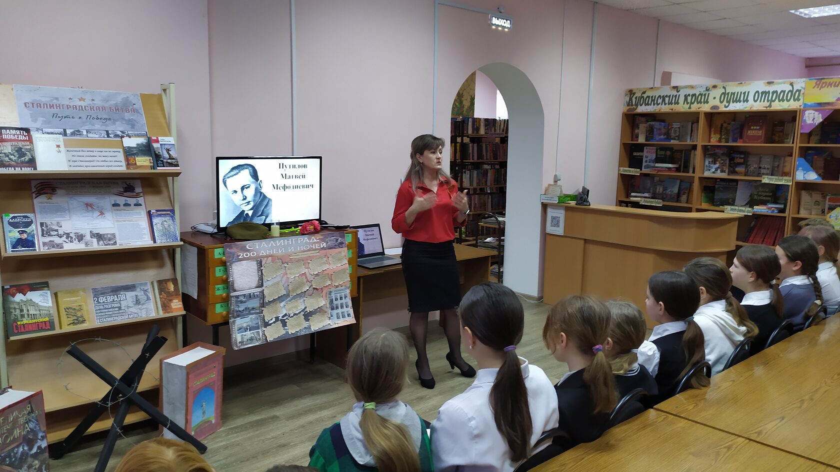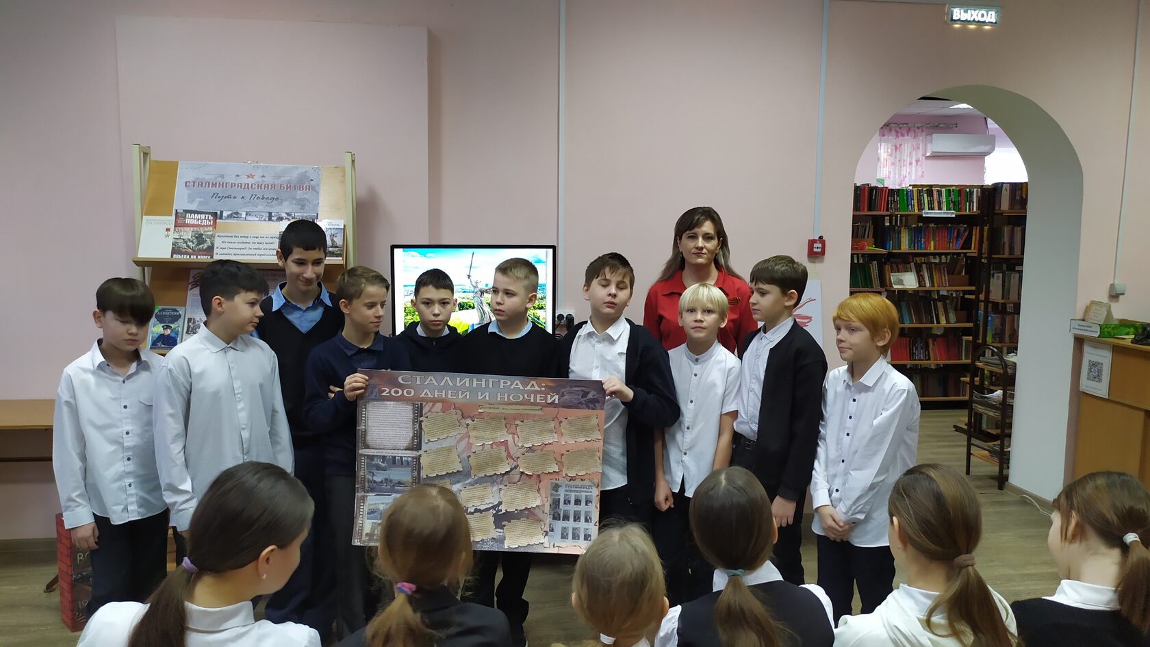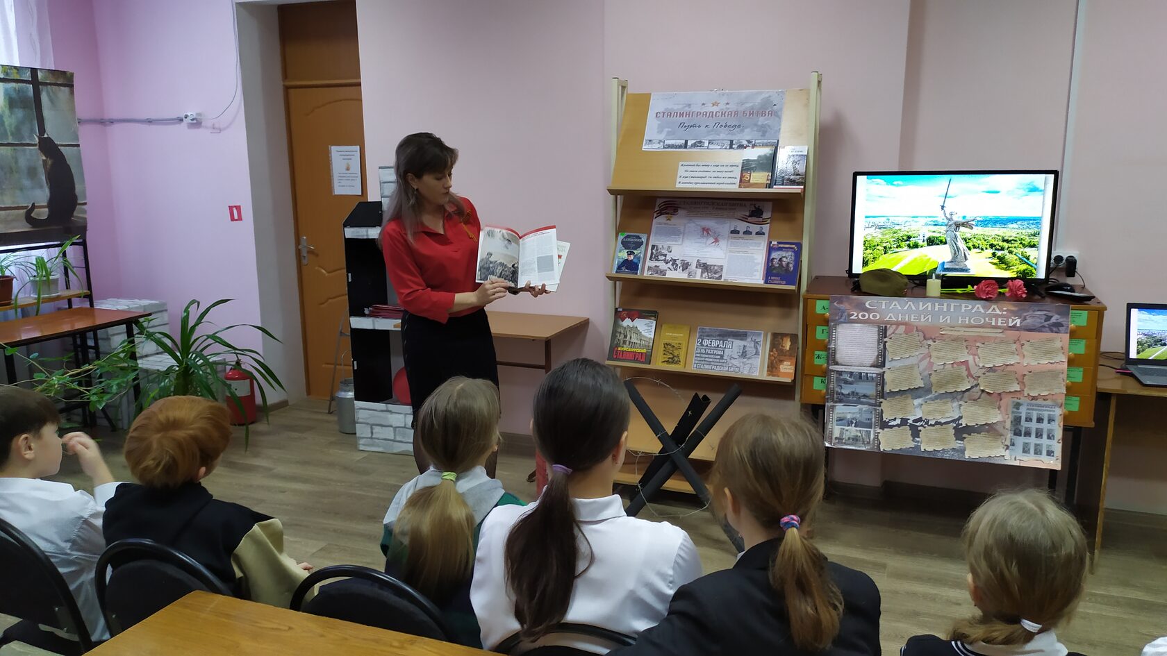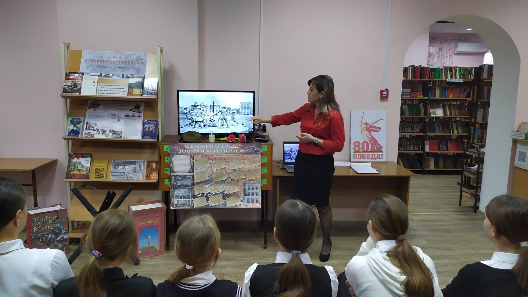 Вниманию школьников была представлена книжная выставка «Сталинградская битва. Путь к Победе», где были представлены документальные и художественные издания о подвигах защитников города-героя.