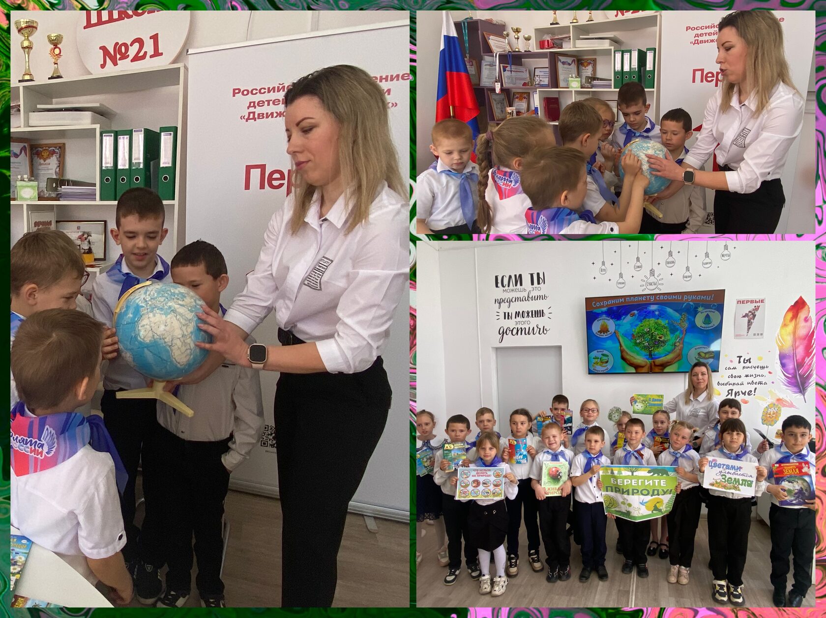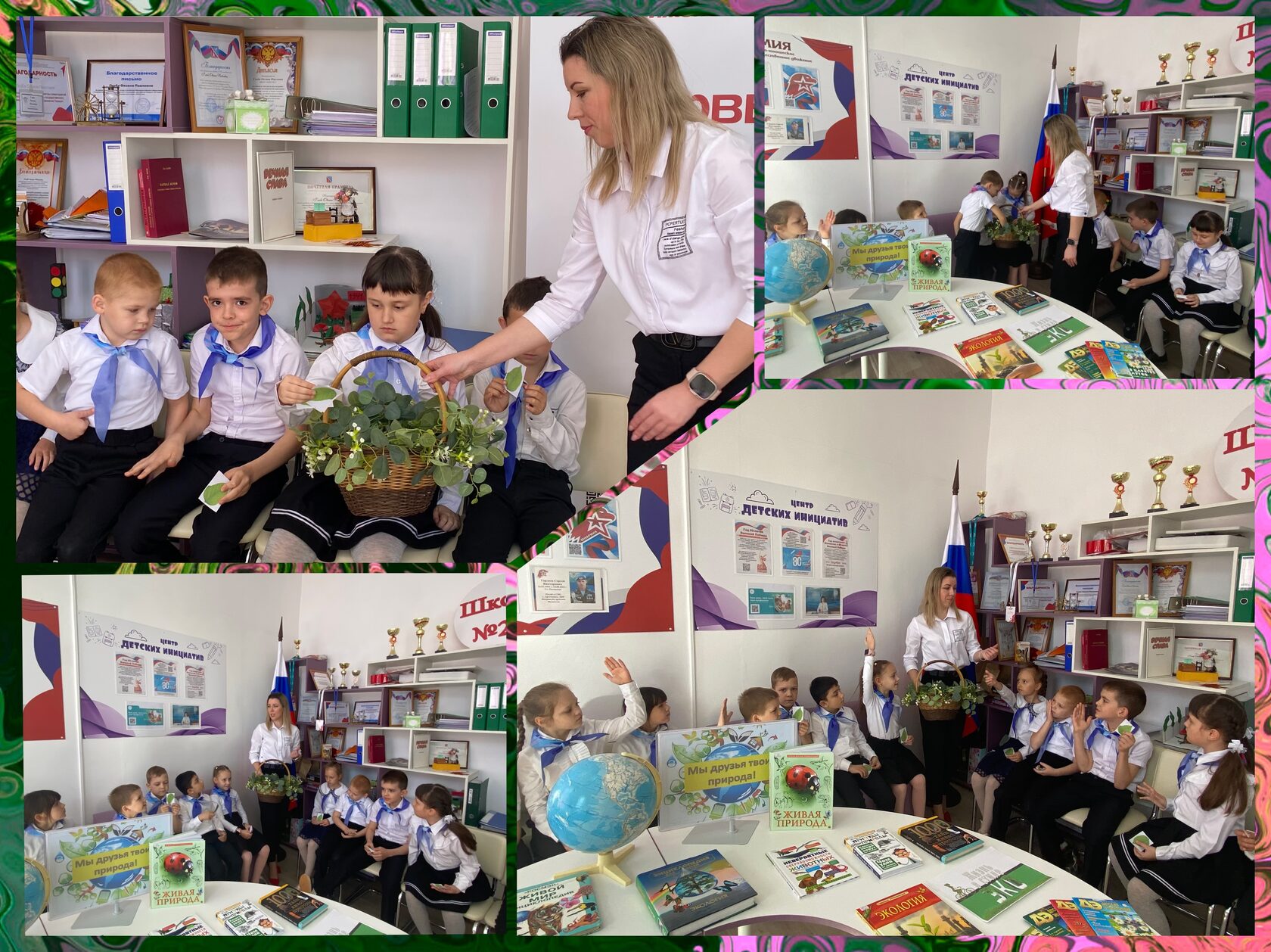 Учащимся рассказали о красоте окружающей природы, о необходимости защиты и бережного к ней отношения, сохранения животного и растительного мира. Просмотр видео-презентации «Международный день Земли» напомнил ребятам правила экологии и помог понять, как нашу прекрасную планету сделать ещё краше. Ярким акцентом мероприятия стала интерактивная игра «Экологический калейдоскоп» и познавательные задания «Крутим глобус» и «По тропинке с зеленой корзинкой». Привлекала внимание ребят книжно-иллюстративная выставка «Мы – друзья твои, природа!». В завершении юные экологи единогласно высказались о том, что каждый человек должен вносить вклад в защиту всего, что нас окружает.