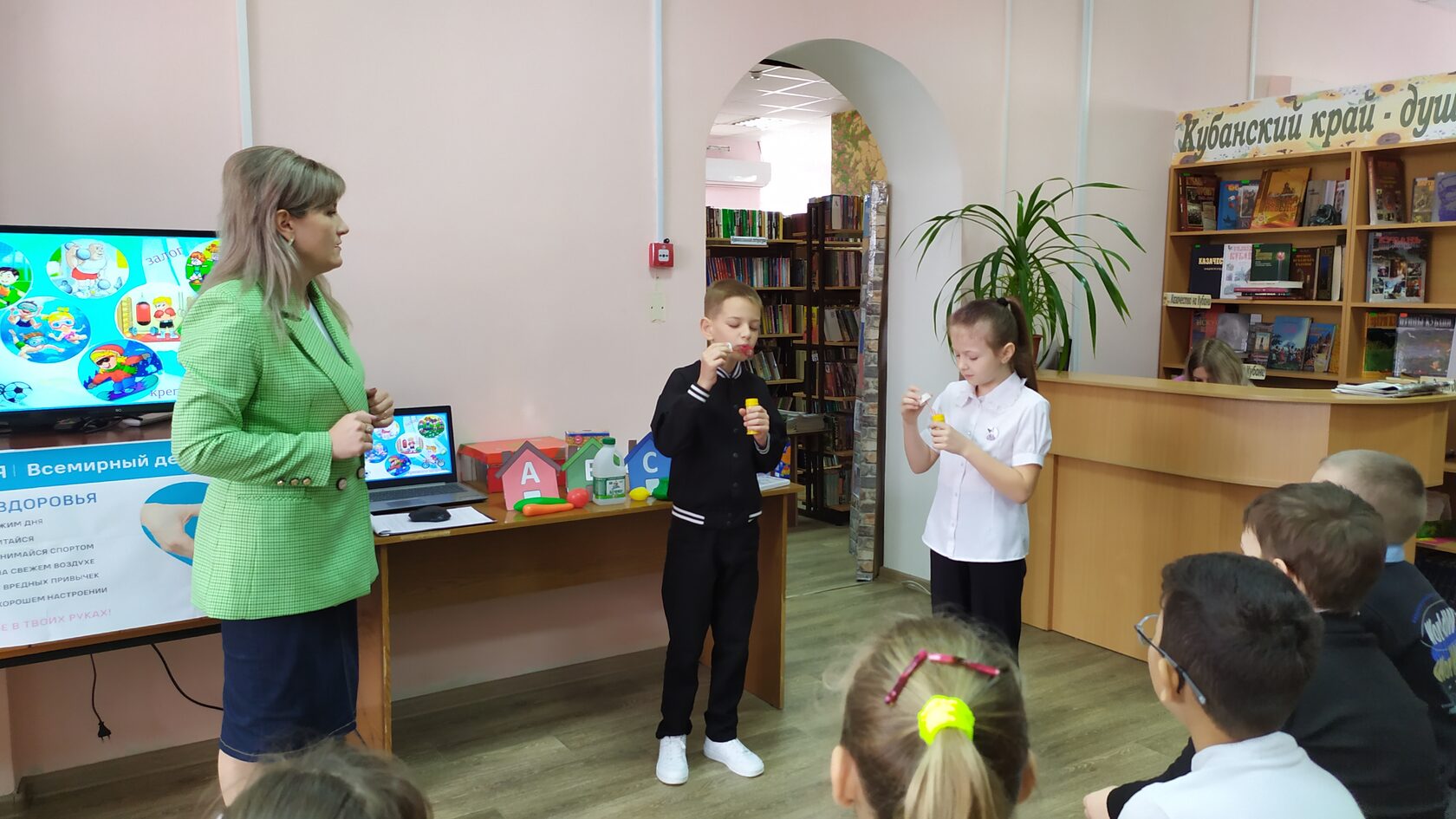 Всемирный день здоровья, который отмечается ежегодно 7 апреля, это не только повод уделить внимание своему самочувствию и здоровью близких, но и замечательная возможность провести время с пользой и удовольствием, посетив различные тематические мероприятия, которые проводятся в этот день. Одним из таких мероприятий стала познавательная игра, которую провели для учащихся МБОУ СОШ №15 сотрудники МБУК «Роговская библиотека». Главной целью встречи стала популяризация здорового образа жизни и формирование полезных привычек у подрастающего поколения. Выполняя интересные задания, дети узнали, как правильно питаться, заниматься спортом и отдыхать, как можно защитить себя от болезней и каких правил нужно придерживаться, чтобы сохранить своё здоровье. Ребята просмотрели мультфильм «Фиксики. Витамины» и ролик «О спорте». Дополнением к полученным знаниям стал обзор книжной выставки «Быть здоровым – это здорово», школьники обратили своё внимания на красочные издания о правильном питании и энциклопедии о различных видах спорта.