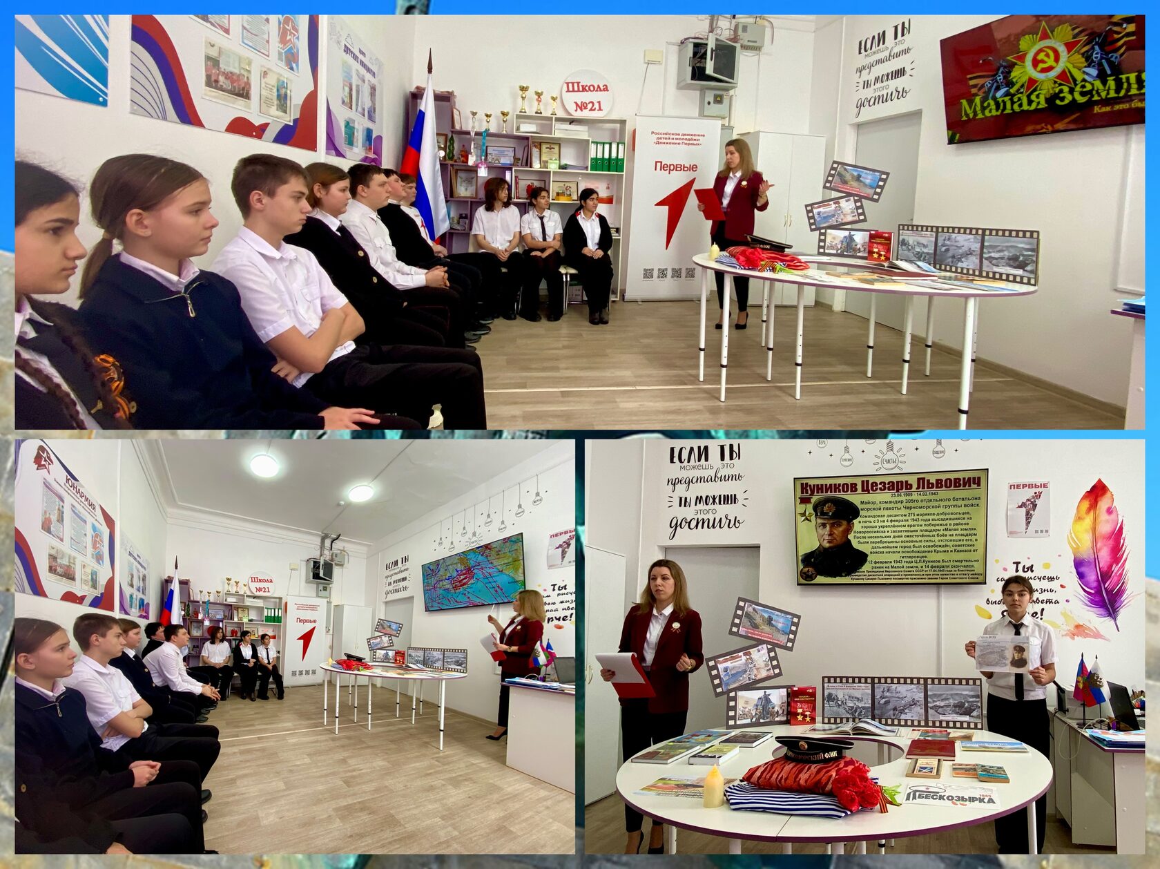 83-й годовщине высадки десанта на Малую землю и 58-й годовщине Всероссийской вахты памяти – операции «Бескозырка» была посвящена патриотическая акция «Этот подвиг помнит море и земля!», организованная филиалом МБУК «Роговская библиотека» совместно с советником директора по воспитанию Глоба О.П. для учащихся 7-9 классов МБОУ ООШ №21.