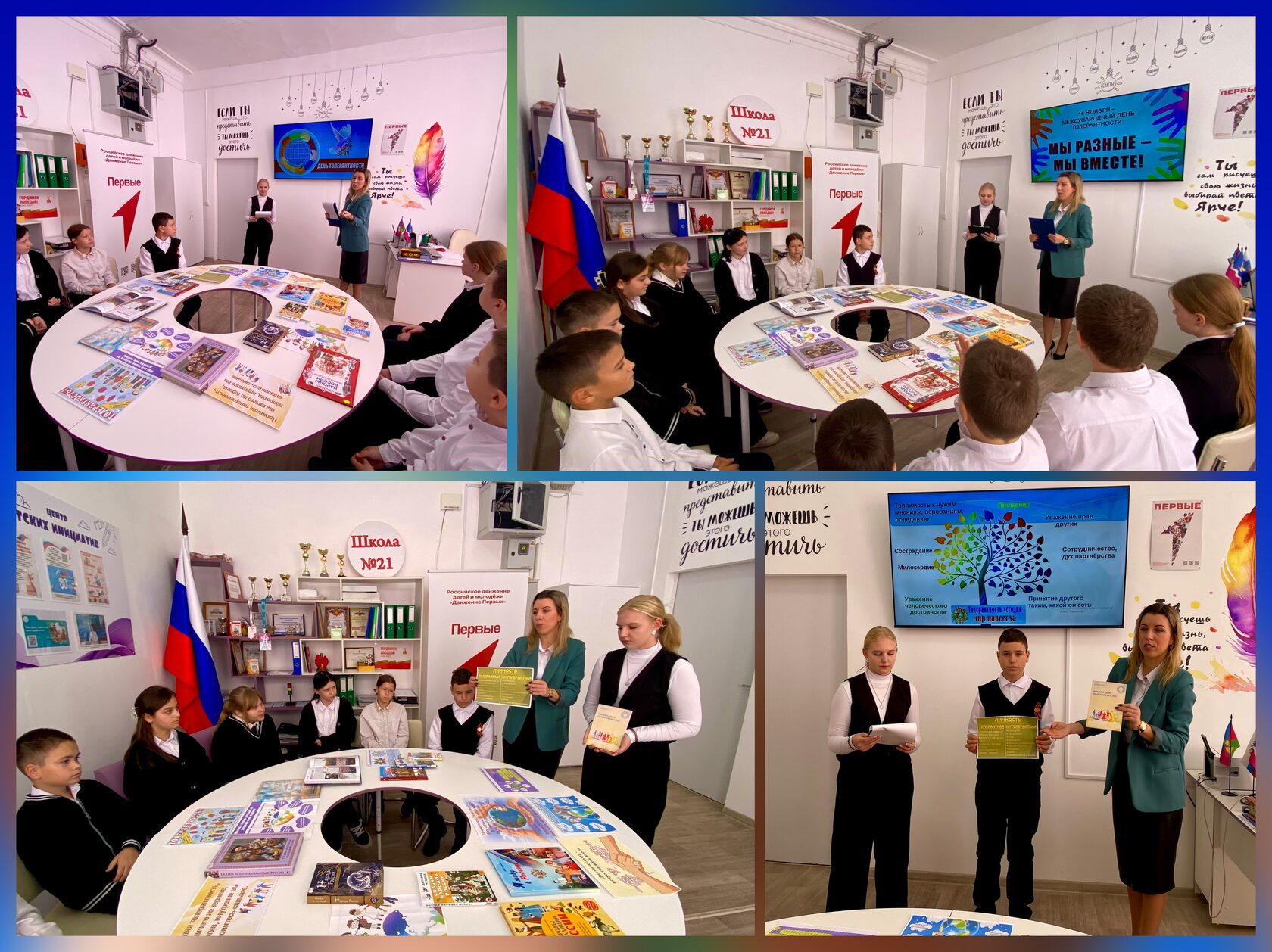 13 ноября 2025 года в преддверии Международного дня толерантности и в рамках проекта «Часы мира и добра» филиалом МБУК «Роговская библиотека» совместно с советником директора по воспитанию Глоба О.П. для учащихся 5-7 классов МБОУ ООШ №21 был проведен урок толерантности «Народы России: азбука дружбы».
