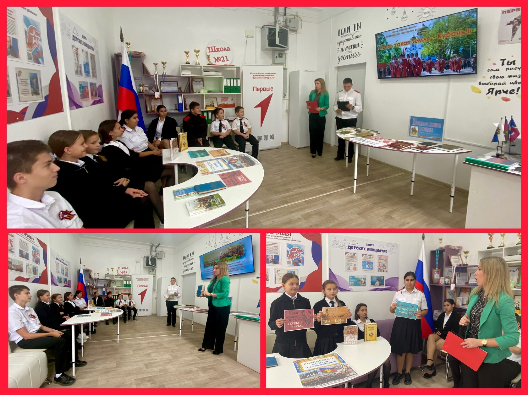 Учащиеся казачьих классов совершили экскурс в далекое прошлое малой Родины, вспомнили историю зарождения и славные вехи верного служения Отечеству кубанского казачества. Внимание участников акцентировали на том, что в нынешнее время казаки вновь подтверждают свою особую историческую роль: как и предки, они опять на передовой, они там, где нужны Родине. Традициям, обычаям и культуре кубанского казачества был посвящен слайд-журнал «Есть такая земля – Кубань!», тематическая зона «Казачество: история и современность» и книжно-иллюстративная выставка «Память жива в веках». Завершилось мероприятие краеведческой викториной, в ходе которой учащиеся показали хорошие знания и эрудицию.