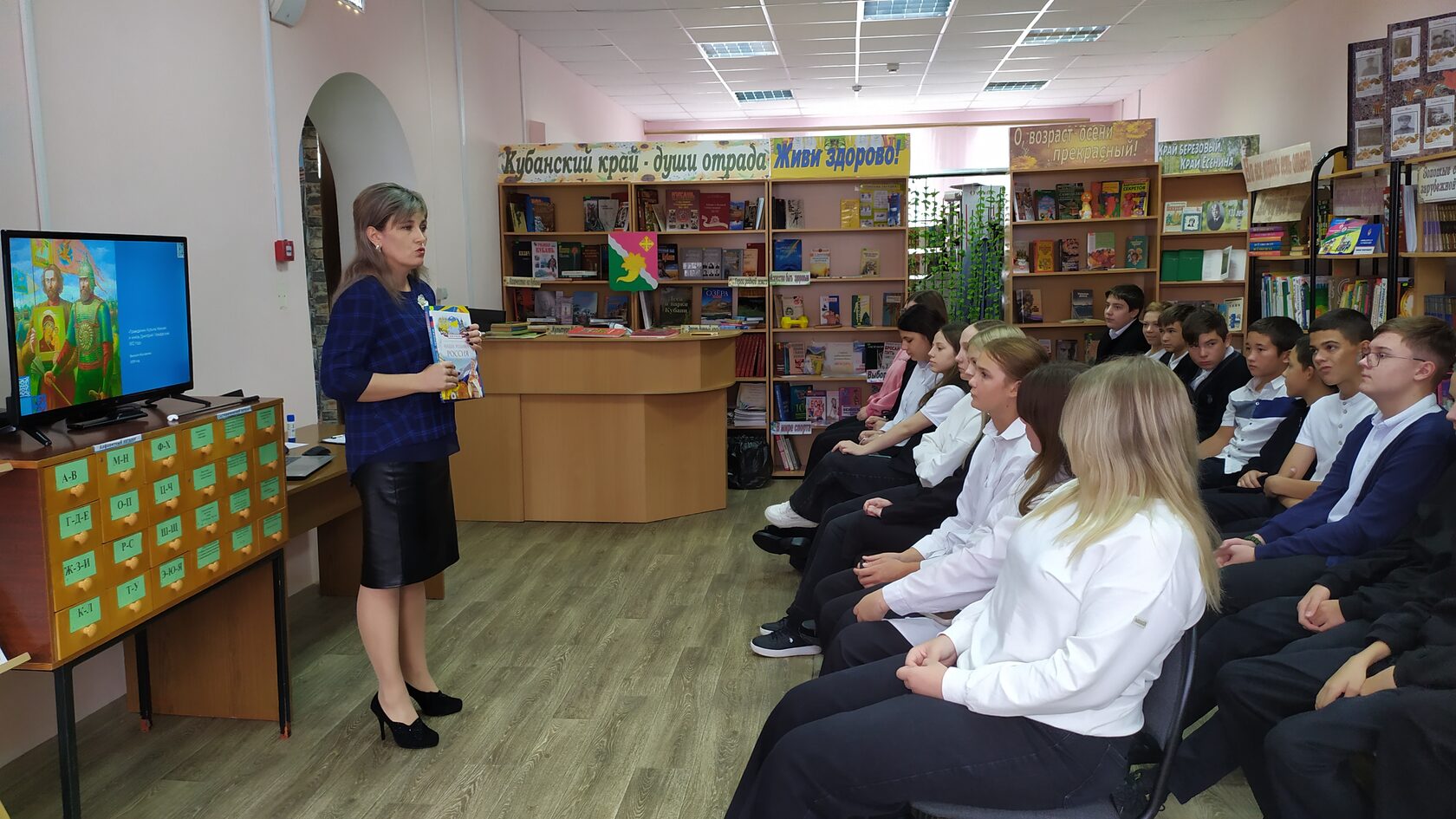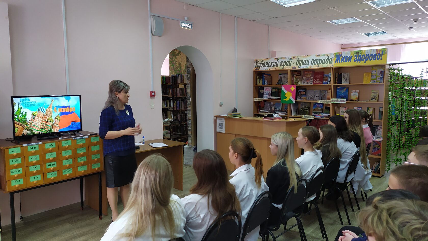 История России - это череда взлетов и падений, крупных побед и поражений, периодов расцвета и упадка. За многовековую историю были моменты, когда судьба государства висела на волоске. Всем казалось, что Россия должна исчезнуть с карты мира, но она выстояла. Чудесным образом и невероятной силой духа своего народа. Так произошло 4 ноября 1612 года, когда Россия была освобождена от польских захватчиков силами народного ополчения. День народного единства напоминает россиянам не только о важном историческом событии 1612 года, но и о необходимости сплочения, объединения народа в трудные времена. В этот праздничный день в МБУК «Роговская библиотека» прошёл патриотический час «Сила России в единстве народов» для подрастающего поколения. Библиотекарь познакомила ребят с историческими событиями 1612 года, привела примеры других важных событий в истории Российского государства, когда жители нашей страны вставали на защиту свободы и интересов Родины, независимо от национальности, вероисповедания и социального положения. Работая со слайд - презентацией «Вместе мы – Россия», познакомились с уникальностью национальных костюмов, ремёсел, кухонь, фольклора разных народов, проживающих на территории нашей страны. Завершилась встреча обзором тематической выставки «О любви беззаветной к Родине».
