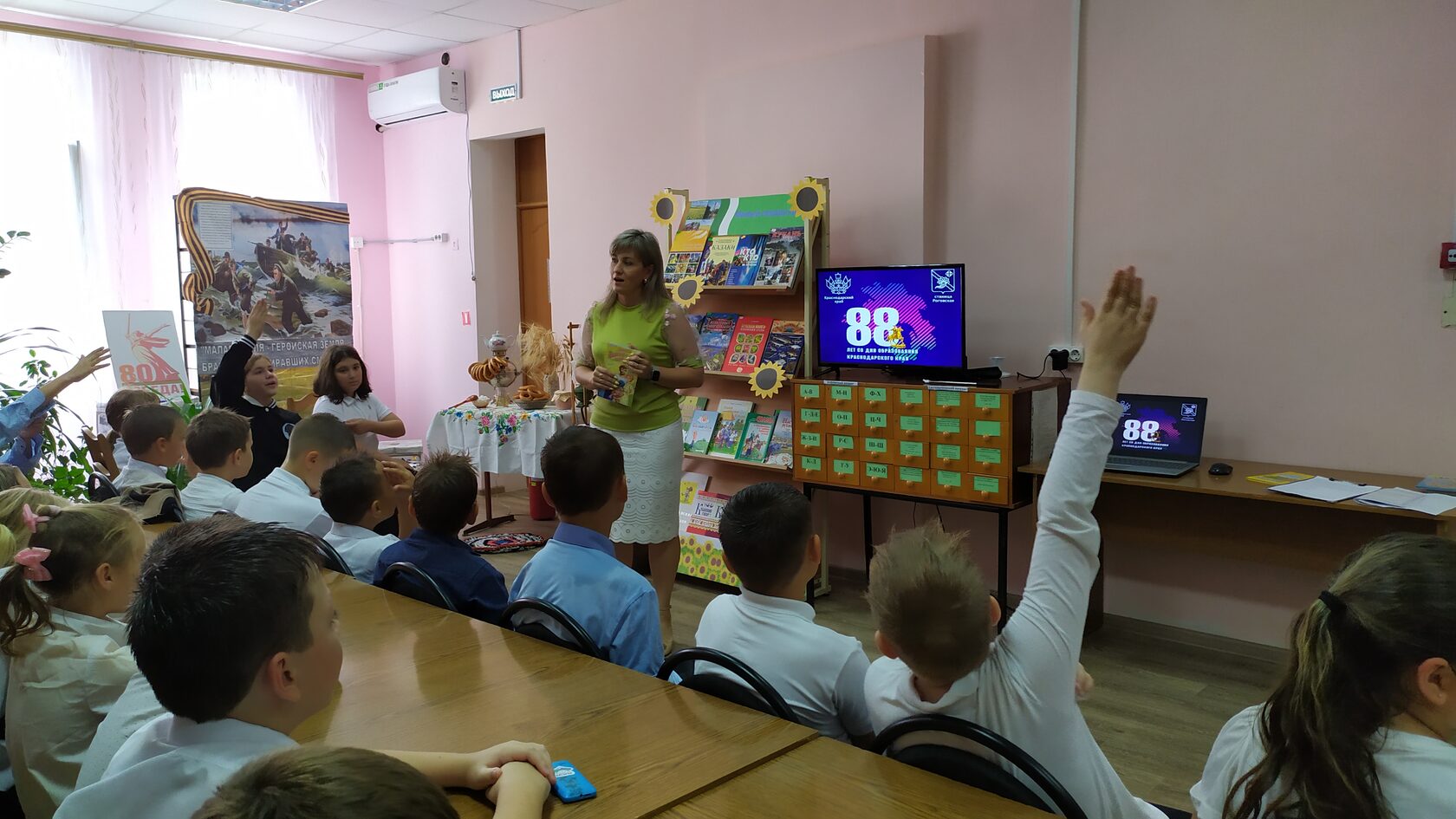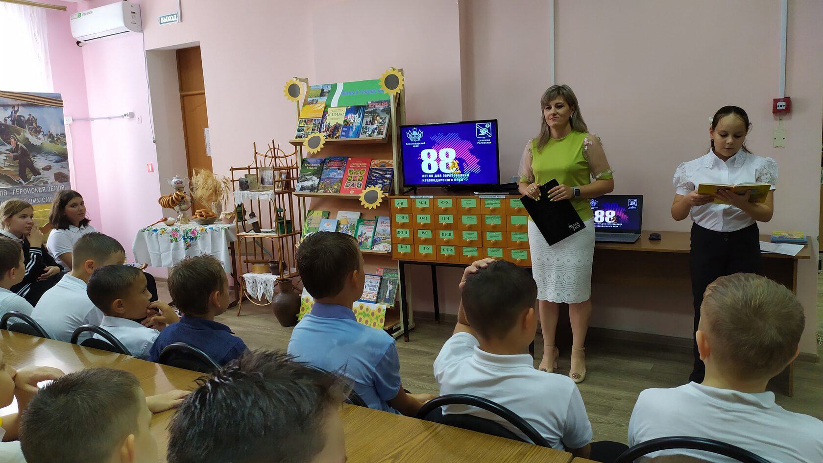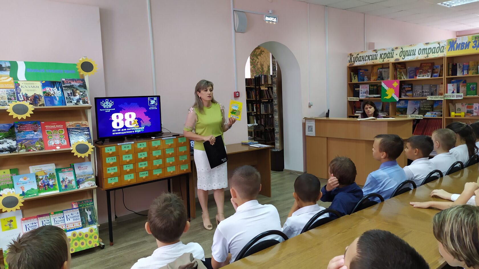 11 сентября в читальном зале МБУК «Роговская библиотека» прошла познавательная программа, посвящённая 88-летию со дня образования Краснодарского края. Гостями библиотеки стали учащиеся МБОУ СОШ №15. В рамках мероприятия юные читатели познакомились с историей края, узнали о его природных богатствах и достопримечательностях, культурных традициях, знаменитых людях, которые родились и жили в нашем крае. Узнали о том, что Краснодарский край является одним из крупнейших регионов России и, по праву, называется «житницей России». Ребята смогли проверить свои знания о природе и истории нашей малой родины, приняв участие в викторине «Удивительная Кубань». К встрече была подготовлена книжная выставка «Милый сердцу край», где была представлена как познавательная и справочная литература о Краснодарском крае, так и лучшие художественные произведения кубанских авторов для детей. Школьники с удовольствием взяли понравившиеся книги для чтения в свободное время. Библиотекарь пожелала ребятам расти здоровыми, хорошо учиться, стать достойными гражданами нашего государства, трудиться на благо малой родины, приумножать богатство родного края и его замечательные традиции.